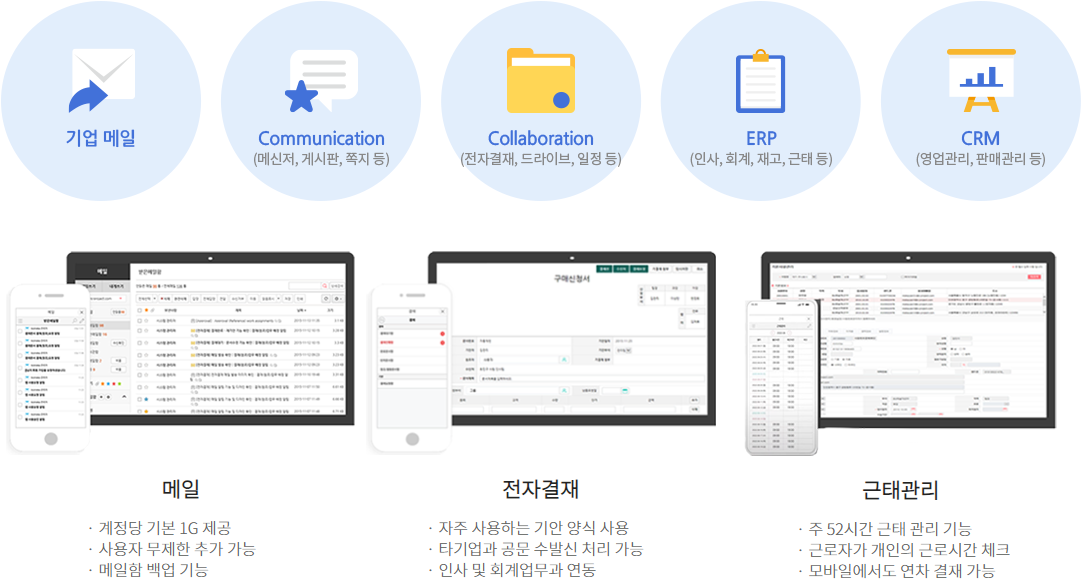 메일부터 전자결재, 메신저 등 다양한 업무용 솔루션과 복지서비스까지