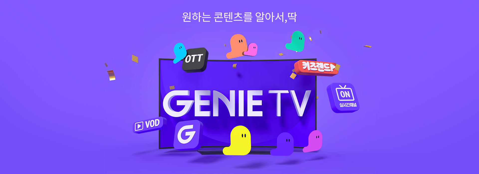 영화 · TV · VOD, LIVE 채널, 키즈랜드, 지니APPS, OTT 서비스 제공으로 온가족 맞춤 다양한 콘텐츠 제공
